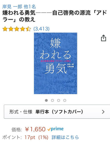 例えばベストセラーになった『嫌われる勇気』ならオーディブル内の会員価格で2100円で購入できます。